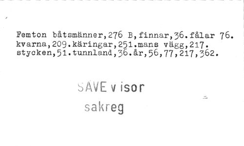 //// Femton båtsmänner,276 B,finnar,36.fålar 76. kvarna,209.käringar,251.mans vägg,217. stycken,51.tunnland,36.år,56,77,217,362. //// SAVE v isor //// sakreg ////