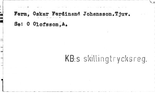 //// i Ferm, Oskar Ferdinand Johansson.Tjnv. * Se*. 0 Olofsson,A. //// 1 j //// J //// KB.s skillingtrycksreg. //// l 1 ////