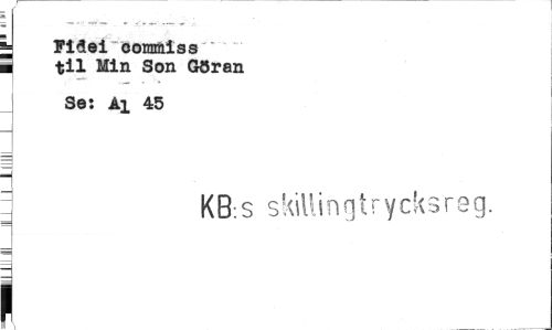 //// Fldei coraöiiss | til Min Son Göran //// Se: Ai 45 //// : KB.s skiilingtrycksreg. //// i ////