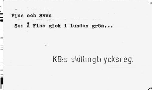 //// ! Fina och Sven //// i ¦- i-: //// Se: 1 Fina gick i lunden grön... //// = KB:S skiilingtrycksreg. ////