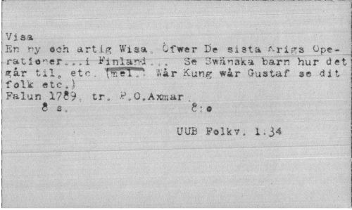 //// Visa //// Er ny och artig Wisa Gfwer De sista ^rigs Operationer. ,. i Finland . , Se SWanaka "barn hur det går til» etc. Sår Kung wår Gustaf se dit //// folk etc.) //// Falun 1?.?9. tr., O.Axmar . //// UUB Folk v. 1.34 ////
