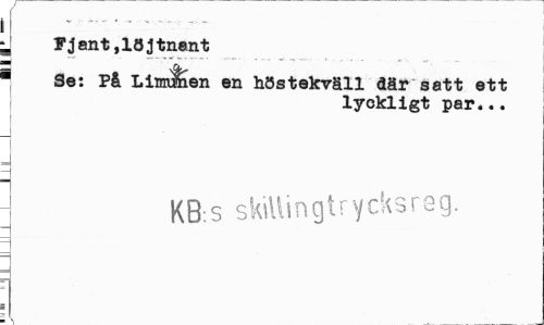 //// if ... //// y Fjant,löjtnant //// ¦ Se: På LimJaen en höstekväll där satt ett //// lyckligt par... //// J //// KB.s skiilingtrycksreg. ////