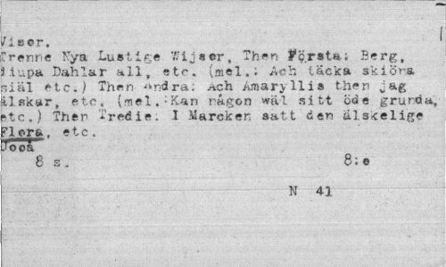 //// riser, ' //// :renr>e Kya Lustige '.Vijser, Then första; Berg, i iupa Dahlar all, etc. (mel.i Ach täcka skiöra 5iäl etc. ] Tn«n «*ndra; Ach Amaryllis then Jag il skar, etc, (mel.-Kan någon mil sitt öde grurda, »te.) Then 1'redie. I Mareken satt den alskelige ?1 era, etc. Xoo& //// 8 s . 8; e //// N 41 ////
