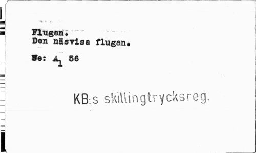 //// ¦ Flugan. " //// Den näsvisa flugan. //// Se: 56 //// = KB.s skillingtrycksreg. //// i ////
