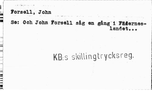 //// 1 //// ^ Forsell, John //// ¦ Se: Och John Forsell såg en gång i Fäåernes- //// lanået.•• //// n - • //// A //// J //// 5 KB.s skiUingtrycksreg. //// "i j //// H g ////
