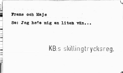 //// I //// | Frans och Maja //// Se: Jag haöe mig en liteö vän... //// jj //// 3 //// 1 //// i //// KB s skiUingtrycksreg. //// f ////