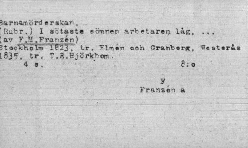 //// tarnamord e»r ska^, //// Rubr.} I sötaste sömnen arbetaren lag, av F.M .Frarzén) //// JtocXhoft TRÖT tr. "F-l-nén och Granberg Westerås .83*. tr. T.H.Bjcrkbom. //// 4 s. " <?; o //// Franaen a ////