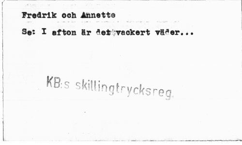 //// .'•¦¦¦¦•¦ - • ... ... • //// Fredrik oeh Annette //// S®: I afton är *efc ;vackert rä^er... //// j KB:s skiUingtrycksreg, ////