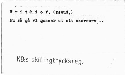 //// I //// F r i t h 1 o f, (pseud,) //// Nu så gå vi gossar ut att exercera .. //// KB.s skiUingtrycksreg. ////