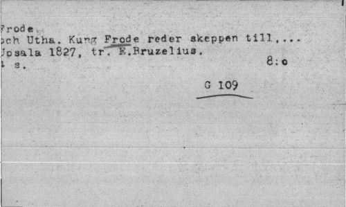 //// fr ode //// >eh Utha. Kung Frode reder skeppen till,.,. Josala 1827, trflTBruzelius. //// v 3 . ° : 0 //// G 109 ////