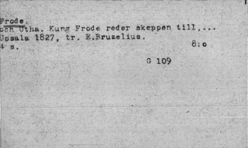 //// Prode , //// icTTVthÄ. Kung Frode reder skeppen till,... Jcsala 1827, tr. E.Bruzelius, t 9. //// G 109 ////