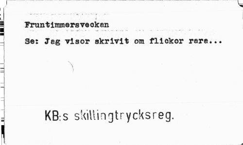 //// j Fruntiimnersveckan //// Se: Jag visor skrivit om flickor rara... //// : \ //// = t //// - KB:S skillingtrycksreg. //// I ////
