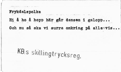 //// I *•.„.,- //// Frykdalspolke //// Hl å ho å hopp här går dansen 1 galopp... Och nu så ska vi surra omkring på allanvis... //// KBs skiUingtrycksreg. ////