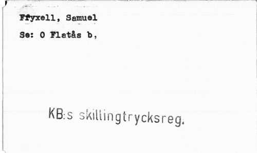 //// Ffyxell, Samuel Se: O Fletås b, //// KB.s skillmgtrycksreg, //// ! ////