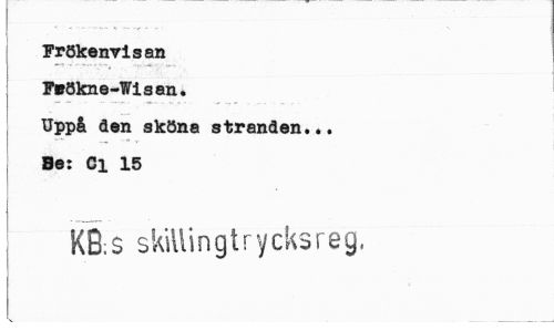 //// Frökenvisan J Feökne-Wlsan. //// Uppå den sköna stranden... Be: Cl 15 //// j KB;S skillingtn/cksreg, ////