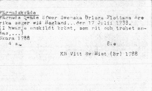 //// ^år^ad ak v'äde //// famdä cfv;er Swenska Örlogs Flottans Aro //// •iVa seger wid iloglanä . . 17 Jul i i '1738. I hvfarje nnsk 1 ld t tre st, som nit och trohet aulas , . . . ) >kara 1788 //// 4 3., e; o //// KB Vitt Sv Hist (Br) 1788 ////