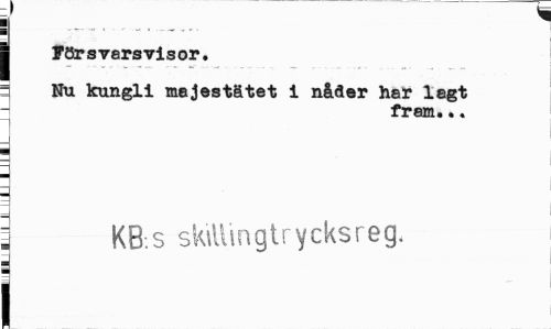 //// I * //// | ITörsvarsvisor. //// : Hu kungli majestätet i nåaer har lagt : fram... //// : KB.s sk\llingtrycksreg. //// i ////