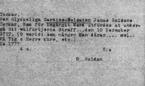 //// -•C •¦ 1'- - ' - • * ' ' ' ¦ //// iC&IlfcfiWP //// >en Olyckeliga //// rankar, S«m for Véilrtgli-*éri utförde» at under-gå Sit wälförtjenta Straff...den^10 Dedember 177,7. (O werldl s«m mången Man dårar... mel.; På Tig o Herr© käre, etc.) tJo 1777 q //// O Sblåan ////