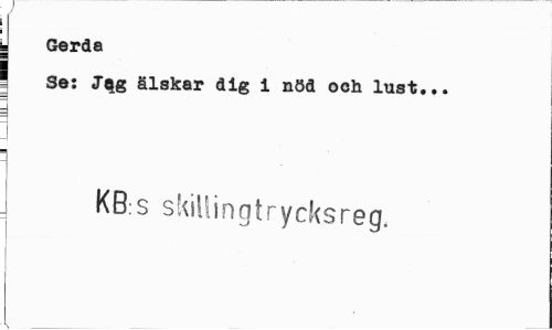 //// J Gerda //// 5 Se: J$g älskar dig i nöå och lust... //// 3 //// g 1 //// j KB s skiilingtrycksreg. ////