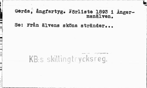 //// y Gerda, ångfartyg, förliste 1895 1 Ånger-I manälven. //// : Se: från älvens sköna stränder... //// ) //// ; KB s skillin gtr y eks reg. ////