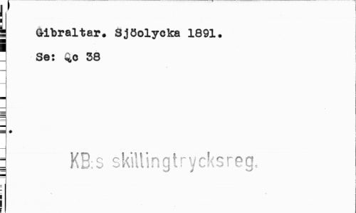 //// 7 //// J Gibraltar. Sjöolycka 1891. //// \ Se: Q,o 38 //// i • //// i KB:S skillingtrycksreg. ////