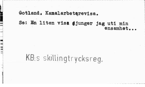 //// jl //// I Gotland. Kamalarbet^revisa. //// - Se: Sn liten vis« Sjunger jag uti min //// ensamhet••. //// n //// m //// : KB:S skillingtrycksreg. ////