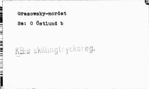 //// i Grasowsky-mordet //// i Se: 0 Östlund "b //// J //// ! KB;S skillingtrycksreg, - //// I ////