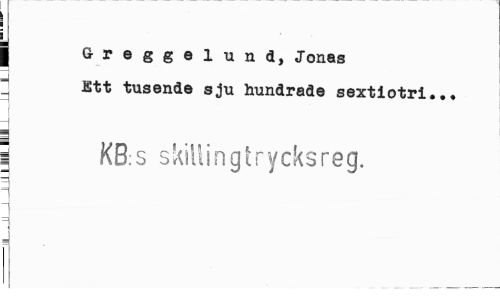 //// j G-reggelund, Jonas //// " Ett tusende sju hundrade sextlotri... //// i KB:s skillingtrycksreg. ////