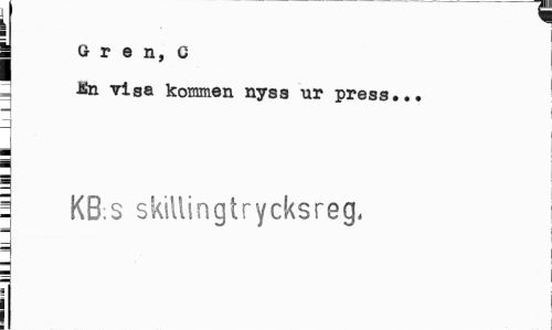 //// 1 //// i //// j G r e n, G //// = JSn visa kommen nyss ur press... ¦ //// i KB:S skillingtrycksreg. //// i ////