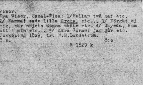 //// fi»or. //// 'ya Wiaor, Can«l-'*"i a&: l/Mell&n tw& haf "te. U ^arrjsal aade lilla I) reta. etc;.., 3/ Förgät ^j nig, när "öjeta öppna akbte etc, 4/ Skynda, tom itt i min etc... c/ Kära SöranJ jag .går etc. rönköping 182^, tr. V. }•:. Lu^d a t röH5. ! s, 8:0 //// K 1829 k ////