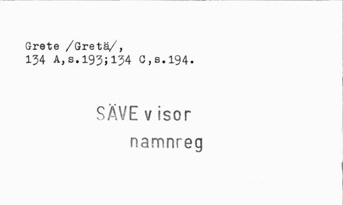 //// Grete /Gretä/, //// 134 A,s.l93;134 0,8.194. //// SÄVE v isor namnreg ////