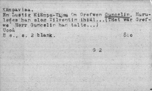 //// fC&n pav i sa . //// En Lustig KiSrnp-a-TiJjBi Om Grefwen GuncelinKuru-ledes han sloc Ulventin ihiäl.. . ('THet" war Gr«f-we Hi»rr Guneelir har talte...) Uooå //// 8 9 ., s. 2 blank. 8; o //// G 2 ////