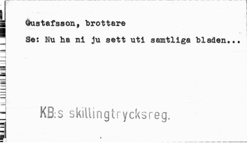 //// I //// i Gustafsson, brottare //// J Se: Nu ha ni ju sett uti samtliga bladen... //// 3 //// : KB:S skillingtrycksreg. //// i ¦ ___ ////