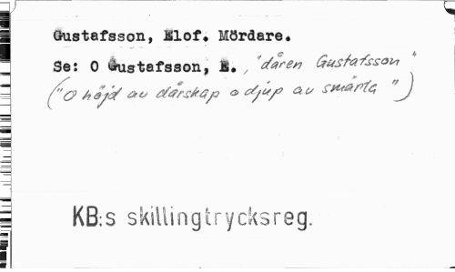 //// ¦ Gustafsson, Jfilof. Mördare. _ Se: 0 Gustafsson, £. , * ef are»7 Gustafsson //// CMrft "J //// i //// 1 KB:S skillingtrycksreg. //// r //// I //// I ////