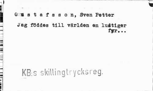 //// i G -a s t a f s s o n, Sven Petter //// - Jag föddes till världen en luåtlger j fyr... //// i KB.s skillingt rycks reg. //// i ! ////