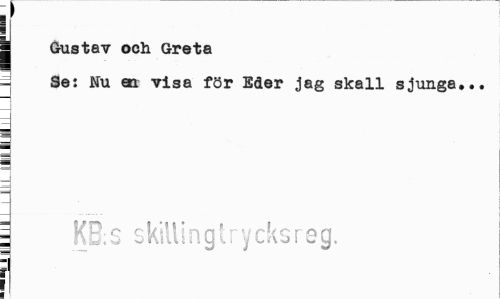 //// j f //// j| Gustav och Greta //// - Se: Nu m visa för Eder jag skall sjunga... //// j KB;S skillingtrycksreg. //// I ////