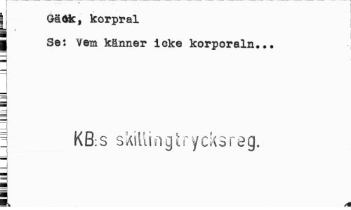 //// 11 Gäökj korpral //// j Se: Vem känner Icke korporaln... //// d //// ] //// i //// t KB:S skillingtrycksreg. //// j | //// ¦ ////