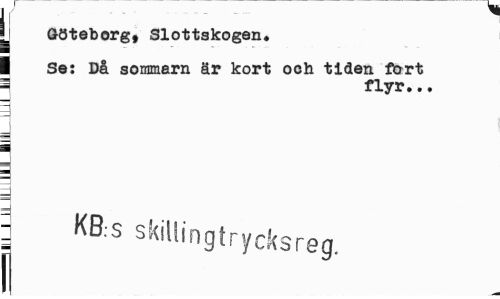 //// jj Göteborg, Slottskogen. //// I Se: Då sommarn är kort och tiden fort i flyr... //// 3 //// J //// 3 //// I //// I //// ; KB s skillingtrycksreg. ////