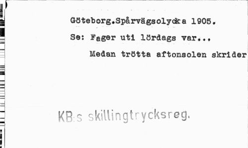 //// I //// y Göteborg. Spårvägs olyeäc a 1905. //// 1 Se: Fager uti lördags var... //// " Medan trötta aftonsolen skrider //// i 1 //// : KB s skillingtrycksreg. //// i i I //// i ////