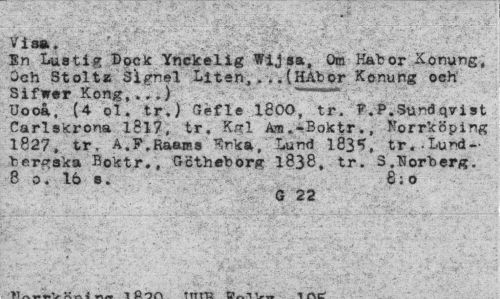 //// in"luati* Dock Ynckelig Wijsa, Om Kåtor Konung, Och Stolt» sirnel Liten,...(HAbor Konung och //// uif0&:r(40n0?:-^) Gefle 1800, tr. F.P Sundast Carlskrona 1817, tr. Kgl Am.-Boktr., *orr.<oping 1827 tr. A.F.Raams ^nka, Lund 183% tr.-L.ura~ bergak» Boktr., Gctheborg 1838, tr. 3 Norberg. 8 16 o. ^ 8;0 //// 6 22 ////