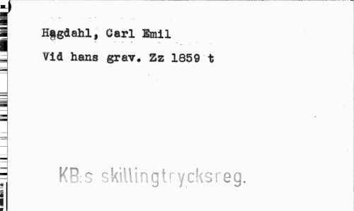 //// •J //// I Hfgdahl, Carl Emil s Vid hans grav. Zz 1859 t //// d //// | KB.s skillingtrycksreg. ¦ //// i ////