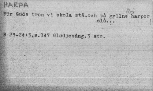 //// "För //// Gudö tron vi skola stå.och på gyllne harpor //// slå..'. | //// Bfe*- //// B 23-24147 Glädjesång.3 str. //// 1 - //// t ' //// mk ¦¦ //// K ////