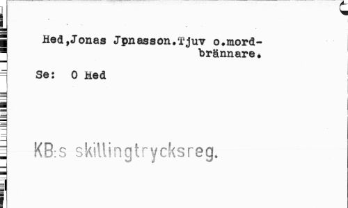 //// L - //// j Hed,Jonas Jpnasson.fjuv o.mord-B brännare, //// = Se: 0 Hed i //// = KB:S skillingtrycksreg. //// I ////