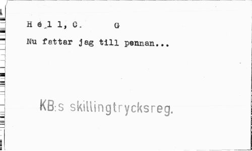 //// J //// J Hé; 1,0. G //// Nu fattar jag till pennan... //// H //// - KB:S skillingtrycksreg. ////