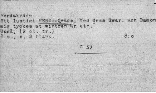 //// ^erdakväde . //// ?tt lustict T!lRl)Å-frw<ide, "ed de sa Swar. Ach Dam or ni* tyckes at^T^TW^r etc/ Uooå, (2 ol. tr.) //// B 3s. 2 tla*vk . 8:o //// .<? 39 ////