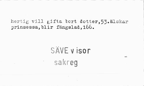 //// hertig vill gifta bort dotter,53«älckar prinsessa,blir fängslad, 166. //// SÄVE v isor //// sakreg ////
