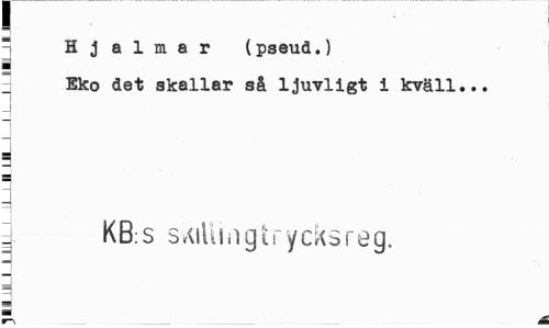 //// I //// Hjalmar (pseud.) //// ~ Eko det skallar så ljuvligt i kväll... //// j //// l 1 //// d KB:S SAiUingtrycksreg. //// | //// ~ å ////