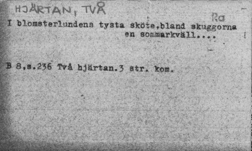 //// W:v Ra //// T blomsterlundens tysta sköte»bland skuggorna //// gr en so&mmrkväll...• //// §B 8,8.236 Två hjärtan.3 str. kom. //// gEgk ?. , . " - a .. ¦ //// ¦jkf //// . //// " .. .. ' i *'" ' '* ' " v " t v , -v ^ ////