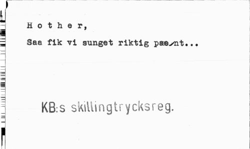 //// » //// i //// n H o t h e r, //// | Saa fik vi sunget riktig pas^nt... //// i //// 1 KB:s skillingtrycksreg. f ////