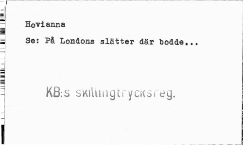 //// ^ Hovianna //// ¦ //// a Se: På Londons slätter där bodde,., //// ? //// H //// H //// J //// 1 KB:S skiUmgtrycKsreg. //// j i ////